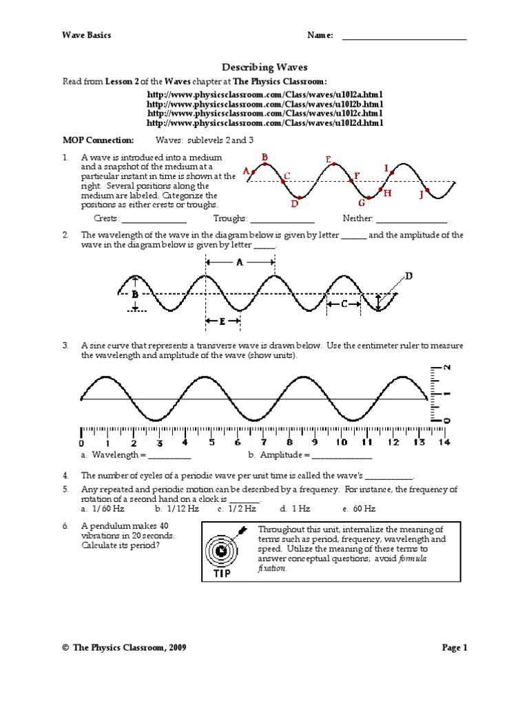 Waves 2 Wksheet Docx Wave Basics Name Describing Waves 2 Read From Lesson 2 Of The Waves Chapter At The Physics Classroom Course Hero